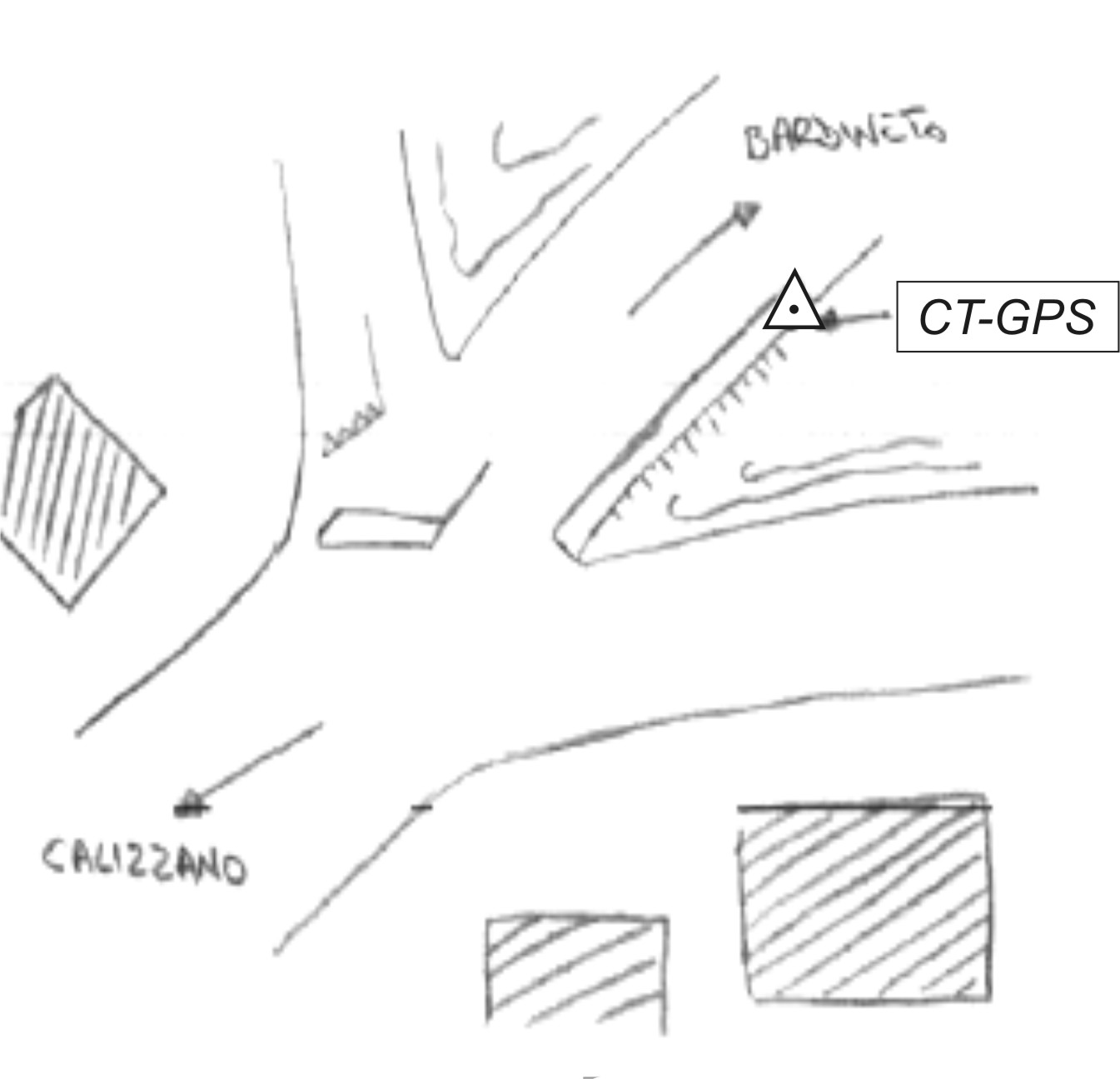 | Materializzazione | Centrino metallico infisso su marciapiede in località Cascinasso. |