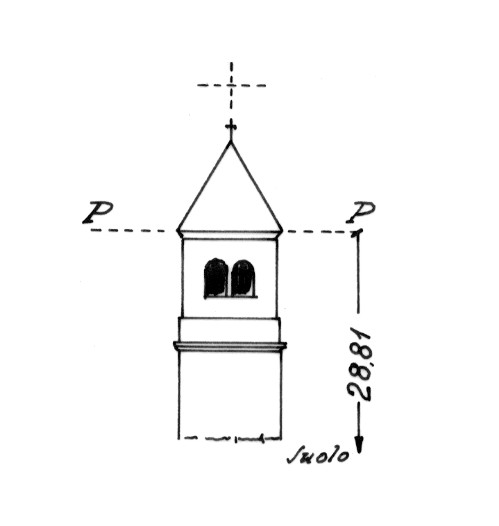 | Materializzazione | Campanile della chiesa parrocchiale. Asse geometrico del campanile. |