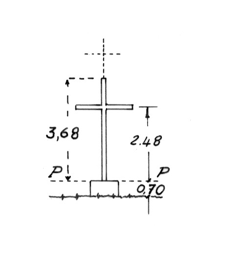 | Materializzazione | Croce, in ferro tubolare, sui resti di un nuraghe sul cocuzzolo dominante il paese di Settimo San Pietro. Asse geometrico della croce. |
