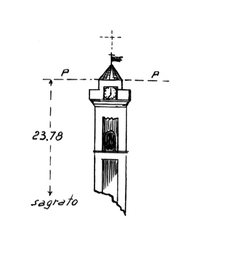 | Materializzazione | Campanile della chiesa parrocchiale. Asse geometrico del campanile. |