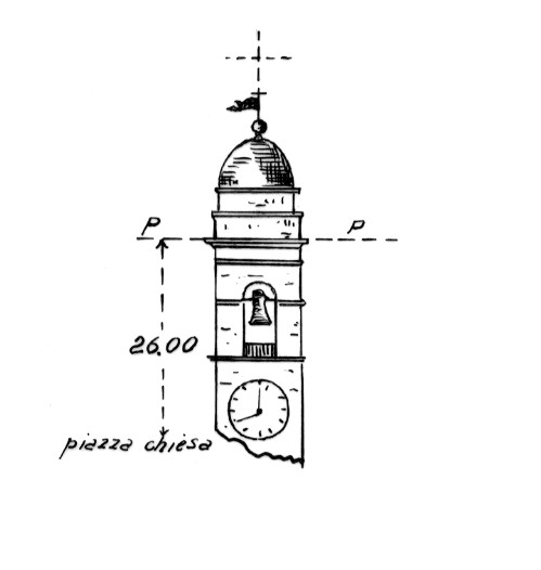 | Materializzazione | Campanile della chiesa parrocchiale. Asse geometrico del campanile. |