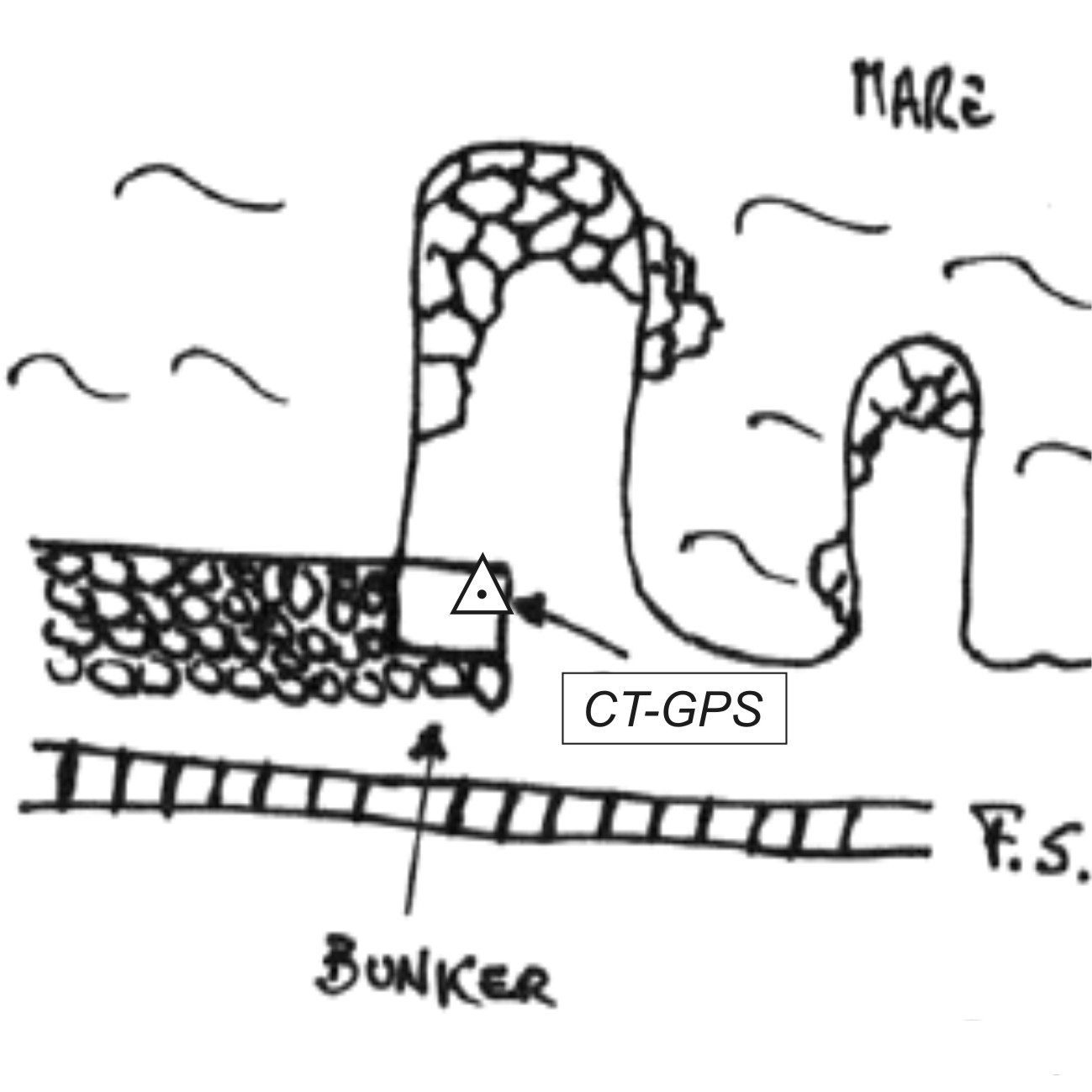 | Materializzazione | Centrino metallico infisso sopra il bunker situato di fronte al mare. |