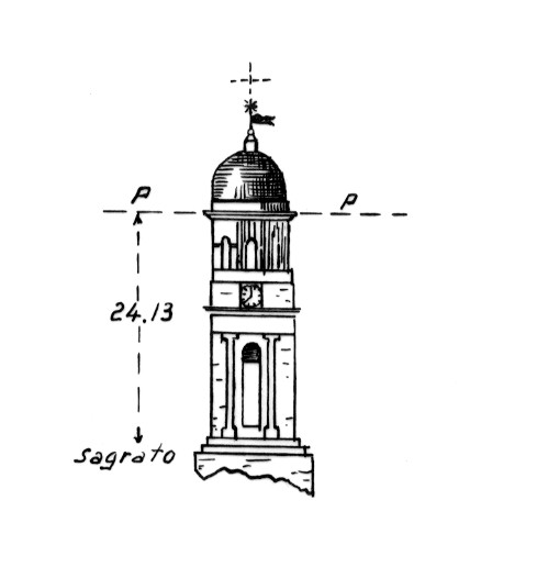 | Materializzazione | Campanile della chiesa parrocchiale. Asse geometrico del campanile. |