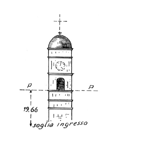 | Materializzazione | Campanile della chiesa parrocchiale. Asse geometrico del campanile. |