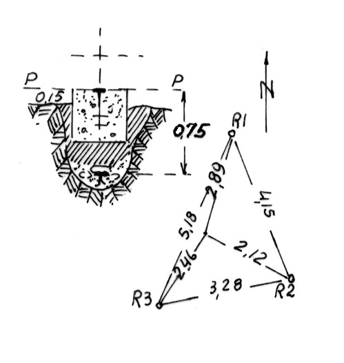 | Materializzazione | Segnale sulla cima della serra. Centrino di superficie e di fondo. Riferimenti: tre centrini. |