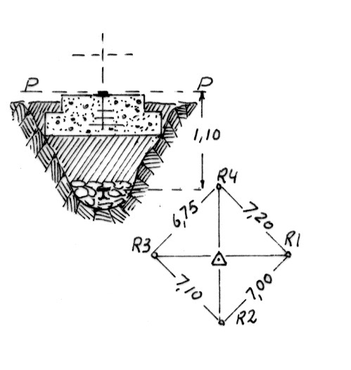 Segnale sulla sommità di un cocuzzolo della serra. Centrino di superficie e di fondo. Riferimenti: 4 centrini.