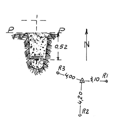 Segnale sulla sommità del dorso più elevato del costone sull'altopiano della Sila. Centrino di fondo. Riferimenti: come da pianta.