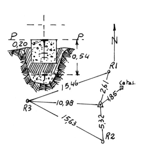 | Materializzazione | Segnale sulla serra 200 metri circa a nord-nord-est della cima. Centrino di superficie e di fondo. Riferimenti: come da pianta. |