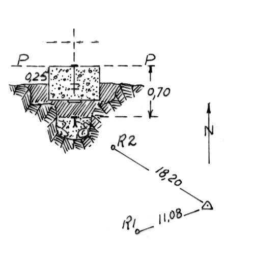 Segnale in contrada Costa S. Pietro a sud-ovest dell'abitato di Crosia. Centrino di superficie e di fondo. Riferimenti: come da pianta.