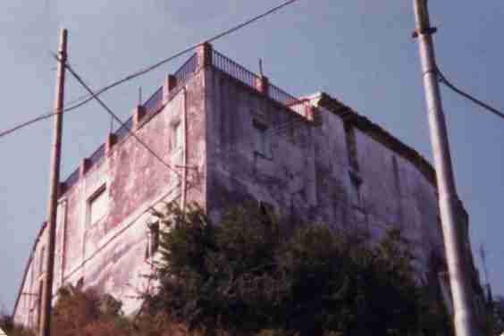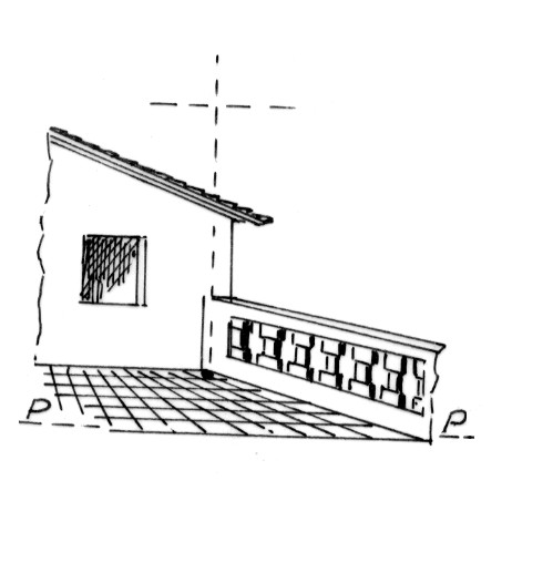 Segnale nell'angolo della terrazza di casa Parisi. Centrino metallico cementato.