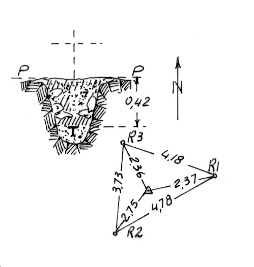 | Materializzazione | Segnale sul cocuzzolo scoperto ad est del Km 171 della S.S. n. 108. Centrino di fondo. Riferimenti: tre centrini cementati su roccie. |