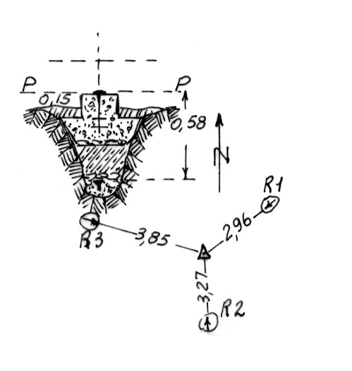 | Materializzazione | Segnale sulla cima di un cocuzzolo in regione omonima. Centrino di superficie e di fondo. Riferimenti: come da pianta. |