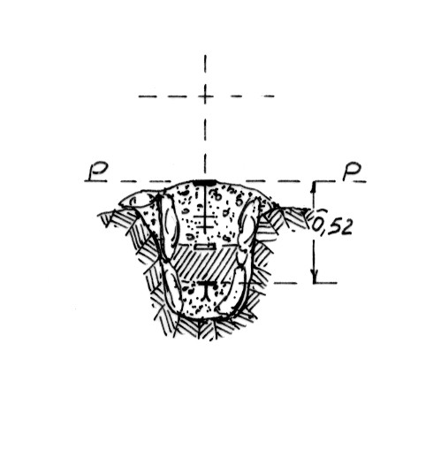 Segnale sul cocuzzolo, 500 metri a sud della statale Ionica. Centrino di superficie e di fondo. Riferimenti: come da pianta.