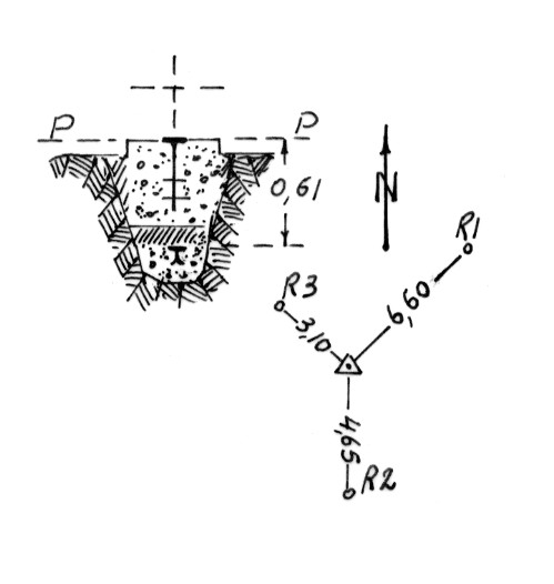 | Materializzazione | Segnale al margine settentrionale di un largo cocuzzolo che si erge isolato sul costone limitato dai Torrenti Celati e Colognati. Centrino di superficie e di fondo. Riferimenti: come da pianta. |