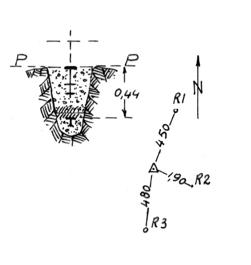 | Materializzazione | Segnale sulla parte più alta di un dorso ondulato e scoperto a destra del torrente Mecone. Centrino di superficie e di fondo. Riferimento: come da pianta. |