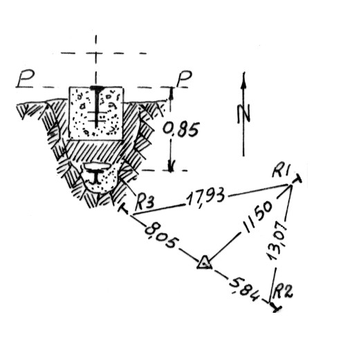 | Materializzazione | Segnale sulla parte più alta del costone. Centrino di superficie e di fondo. Riferimenti: come da pianta. |