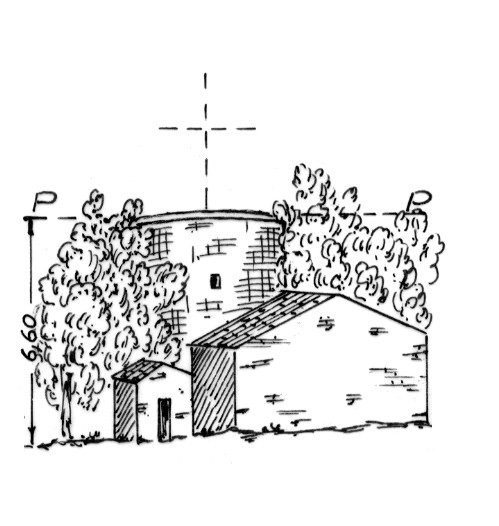 Torre circolare situata sul lato orientale del costone che scende dalla regione La piana. Asse geometrico della torre, materializzato da centrino metallico al centro del piano in cemento che forma la sommità della torre.