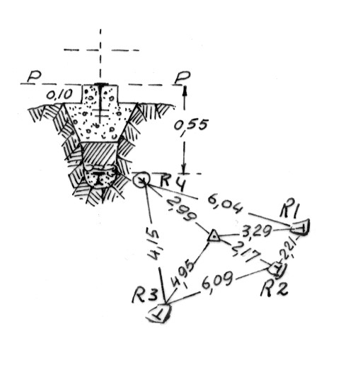 Segnale sul punto più elevato del monte. Centrino di superficie e di fondo. Riferimenti: come da pianta.