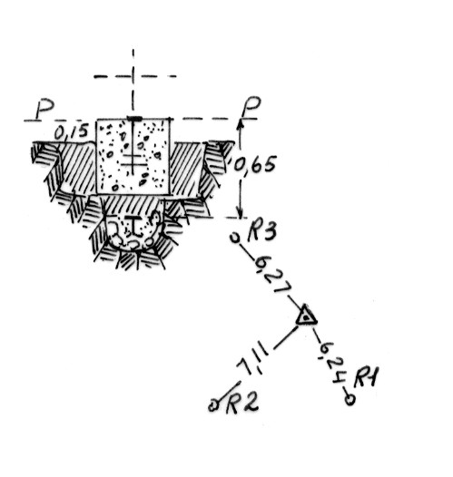 | Materializzazione | Segnale su di un'altura fra il fosso della Ginestra e quello di Palarino. Centrino di superficie e di fondo. Riferimenti: come da pianta. |