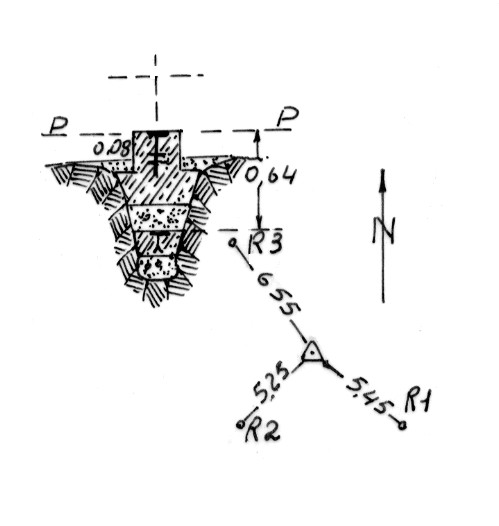 Segnale sulla cima tondeggiante del monte. Centrino di superficie e di fondo. Riferimenti: come da pianta.