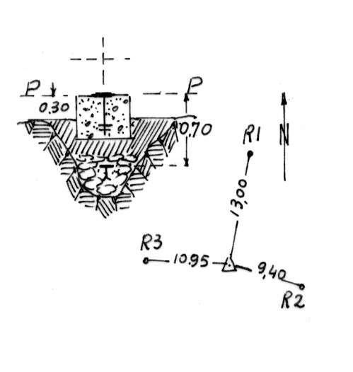 | Materializzazione | Segnale sulla cima del monte a sud di Campana. Centrino di superficie e di fondo. Riferimenti: come da pianta. |