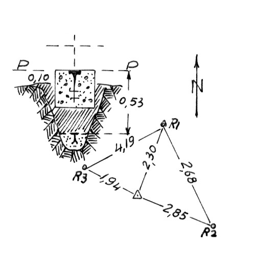 | Materializzazione | Segnale su un cocuzzolo boscoso, a nord del fabbricato demaniale. Centrino di superficie e di fondo. Riferimenti: come da pianta. |