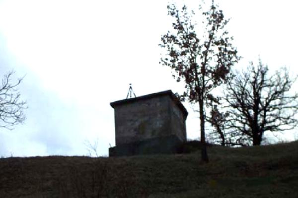 Centrino metallico infisso sul tetto di un serbatoio dell'acqua.
