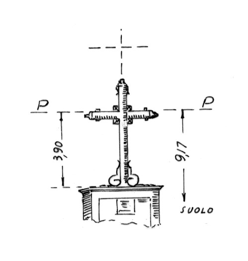 | Materializzazione | Croce su basamento posta alla sommità del cozzo a sinistra della rotabile per Cropolati. Asse geometrico della croce. |