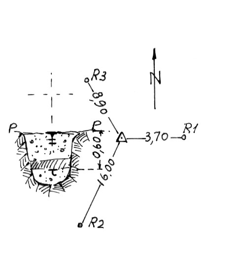 | Materializzazione | Segnale sulla parte più alta del costone. Centrino di superficie e di fondo. Riferimenti: come da pianta. |