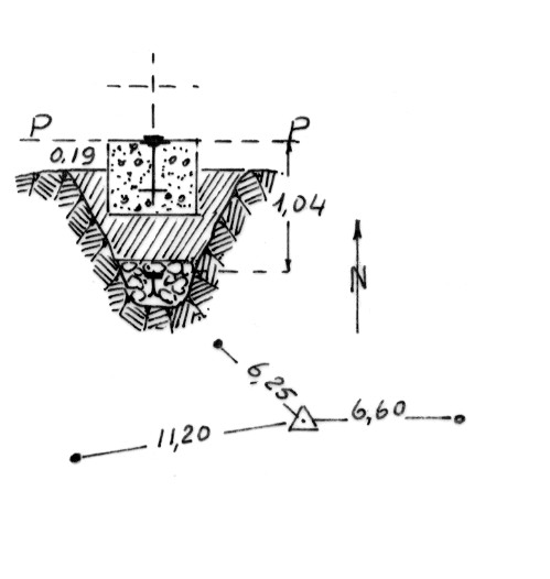| Materializzazione | Segnale all'estremità del costone che sovrasta la forra di Fiumenica. Centrino di superfice e di fondo. Riferimenti: come da pianta. |