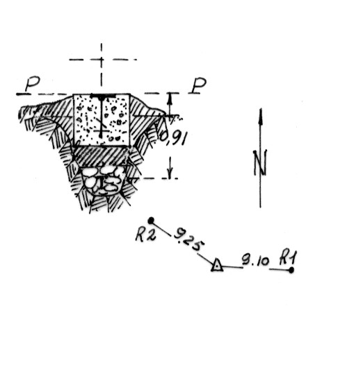 | Materializzazione | Segnale sull'altura tondeggiante a nord-ovest del paese. Centrino di superficie e di fondo. Riferimenti: come da pianta. |