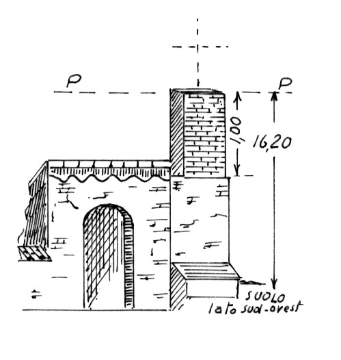 Segnale sullo spigolo sud dell'abbaino dal quale si accede alla terrazza del castello. Pilastino. Asse geometrico del pilastrino.