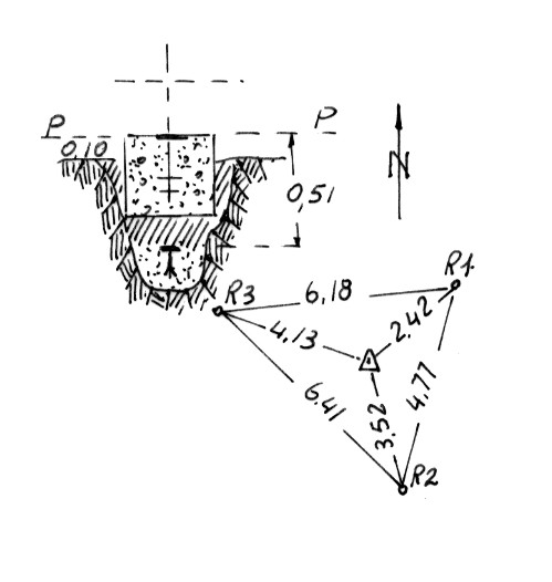 Segnale sul dorso erboso a nord-ovest della caserma della Guardia Forestale. Centrino di superficie e di fondo. Riferimenti: come da pianta.