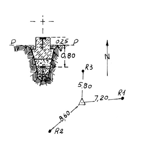 Segnale su di una punta che domina i due versanti in regione omonima. Centrino di superficie e di fondo. Riferimenti: come da pianta.