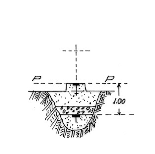 Segnale, situato verso l'estremità meridionale della vasta conca, in prossimità di due tralicci della linea elettrica. Centrini metallici di superficie e di fondo cementati in blocchi di calcestruzzo.