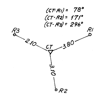 Segnale sulla sommità di un piccolo rilievo, presso lo spigolo Nord/Ovest di una siepe. Centrino cementato in superficie in pozzetto di calcestruzzo. Riferimenti: come da pianta.