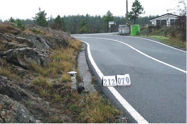 Centrino inox infisso sul cordolo laterale al Km 24+600 della S.P. 210, nei pressi del bivio per il villaggio Berton.