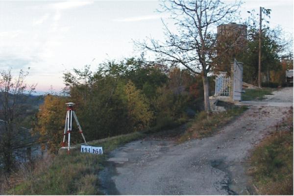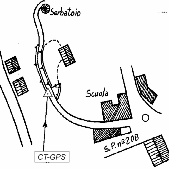 Centrino inox infisso sul muro di sostegno a alto della strada di accesso al serbatoio pensile, di fronte al cancello di accesso ad una abitazione.