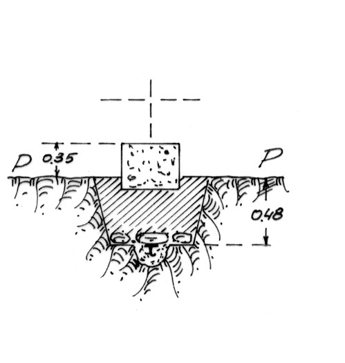 | Materializzazione | Segnale sull'orlo di un terrazzo in regione le Quote. Pilastrino di cemento con sottostante centrino di fondo. |