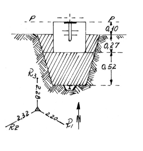| Materializzazione | Segnale sulla collinetta. Centrini di fondo e di superficie in un blocco di calcestruzzo. Riferimenti: come da pianta. |