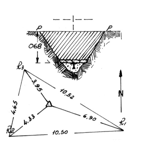 Segnale sopra un cocuzzolo di calcare. Centrino di fondo interrato. Riferimenti come da pianta.