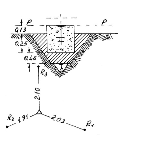 Segnale sulla collinetta omonima circondata di quercie. Centrini di fondo e di superficie in blocco di calcestruzzo. Riferimenti: come da pianta.