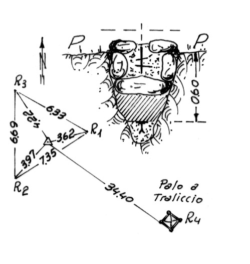 | Materializzazione | Segnale sul punto più elevato del piano omonimo. Centrino di fondo e gambo del centrino di superficie in blocco di calcestruzzo. Riferimenti: come da pianta. |