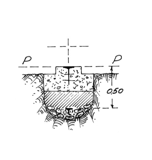 Segnale su una collinetta. Centrini di fondo e di superficie in un blocco di calcestruzzo.
