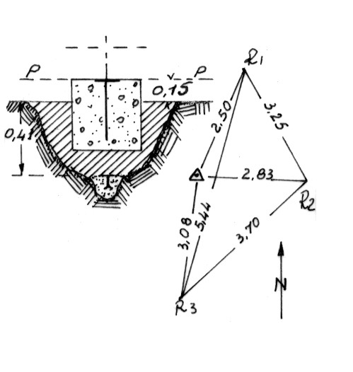 Segnale sul cocuzzolo. Centrini di fondo e di superficie in un blocco di calcestruzzo. Riferimenti: come da pianta.