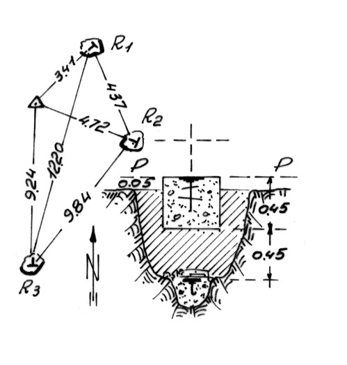 | Materializzazione | Segnale sull'altura fra il fiume Lese e il cozzo dell'Asino. Centrini di fondo e di superficie in un blocco di calcestruzzo. Riferimenti: 3 incisioni a T scolpite nella roccia e tinte in minio. |