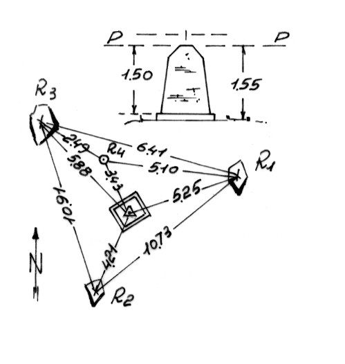 | Materializzazione | Pilastro di sostegno della croce in legno, ora scomparsa, sulla cima del colle. Asse geometrico del pilastro. Riferimenti: come da pianta. |