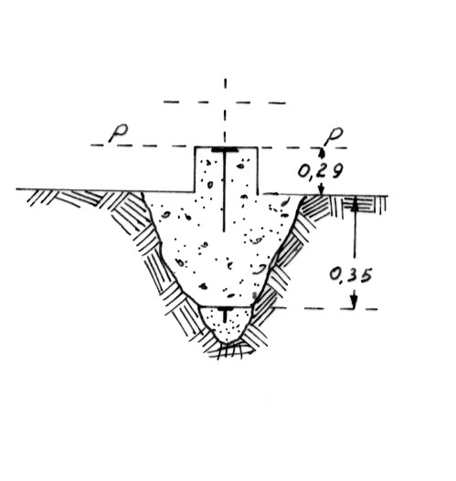 Segnale sul monte. Centrini di fondo e di superficie in un blocco di calcestruzzo.