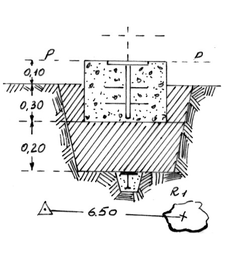Segnale sul monte. Centrini di fondo e di superficie in un blocco di calcestruzzo. Riferimenti: come da pianta.