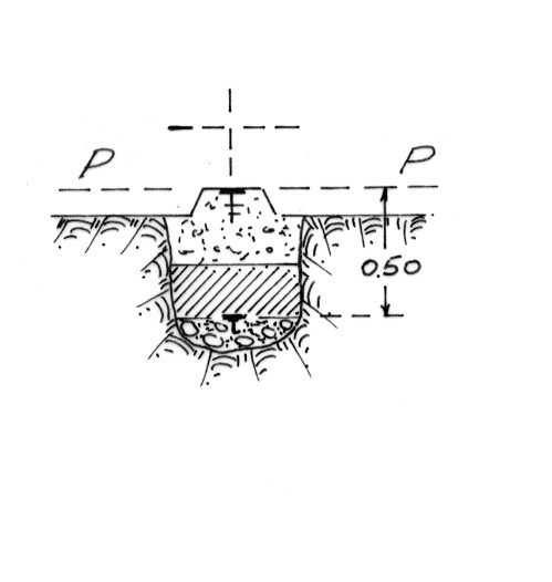 Segnale sul piccolo altopiano. Centrino di fondo cementato su pietra con sovrastante pilastrino in calcestruzzo con centrino di superficie alla sommità.